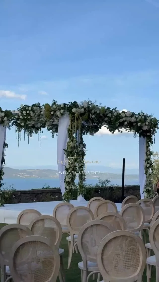 The aisle at Jasmine and Alberto's wedding was transformed into a breathtaking floral masterpiece. A big wave made entirely of flowers cascaded along the path, guiding the couple toward their happily ever after. This wave was composed of a harmonious blend of hydrangeas, roses, and delicate baby's breath.