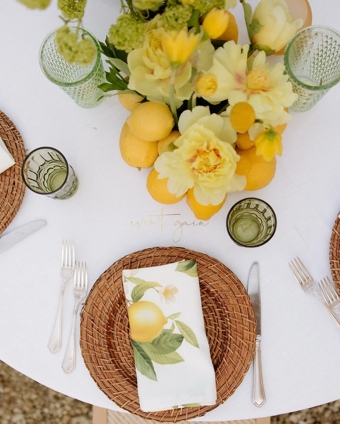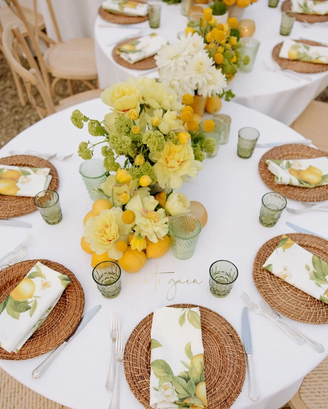 Eventi Gaia consult on all creative aspects: floral design, lighting, linen, glassware, charger, plates, wedding stationery and event furnishings, as well as practical aspect including floor plans and seating.